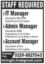 Private Company Lahore, located in Lahore, Punjab, Pakistan, has announced multiple vacant positions, including Account Manager, Admin Manager, and IT Manager, as per the advertisement published in the Daily Jang Newspaper on November 9, 2025. Candidates holding qualifications such as MBA, ACCA, or MS are encouraged to apply.